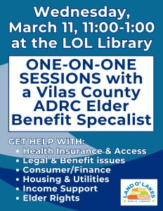 One-on-One Sessions with ADRC Benefit Specialist Patrick Smothers. Get help with: Health Insurance & Access, Legal & Benefit Issues, Consumer/Finance, Housing & Utilities, Income Support and Elder Rights. First come, first serve.