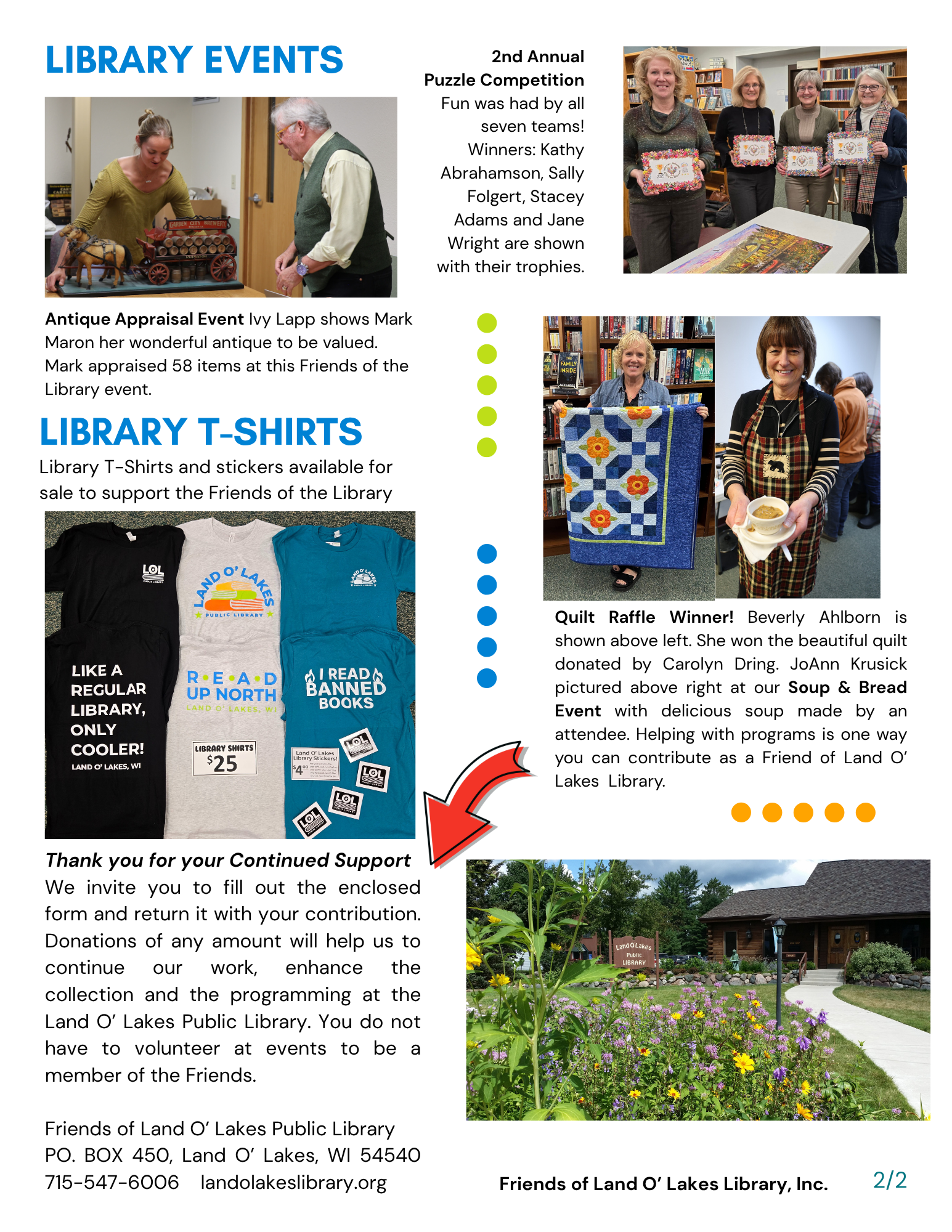 We are proud of our dedicated volunteers who contribute their time and talents to make us a true community library.